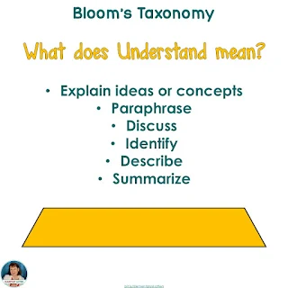 Understanding requires the learner to go beyond that surface-level comprehension and dig into higher-order thinking skills such as summarizing information, identifying key points from a text they read or heard about, describing the main themes from a video they watched, discussing subtle aspects of an article or book they read or paraphrasing complex ideas in their own words. There's a lot more thinking involved here!